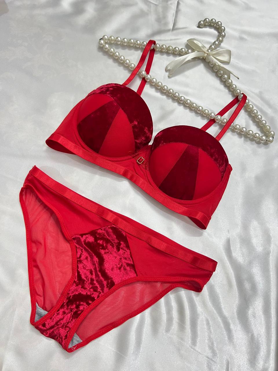ست شورت و سوتین اسفنجی با رویه ی مخمل